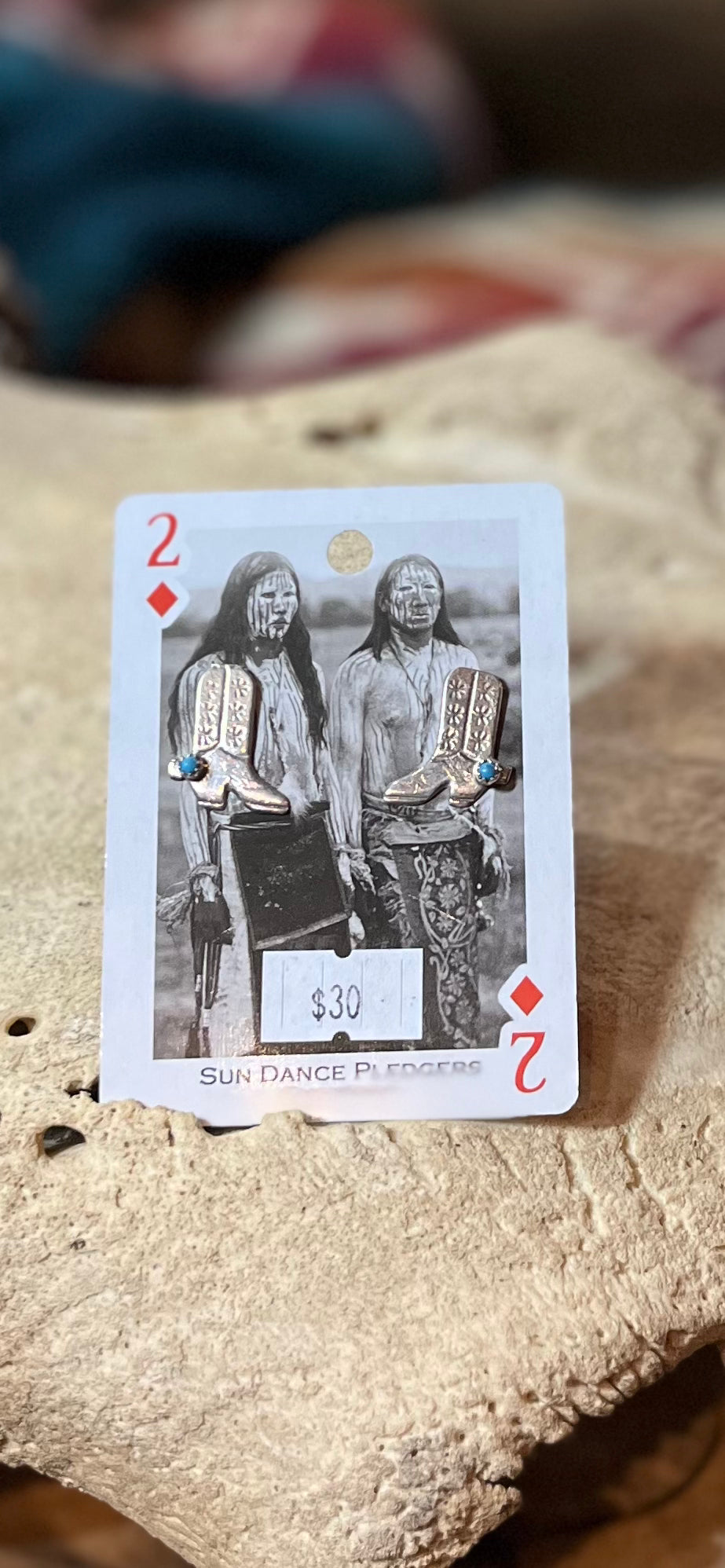 Sterling silver boot stuff with turquoise on spur. Native made without marks.