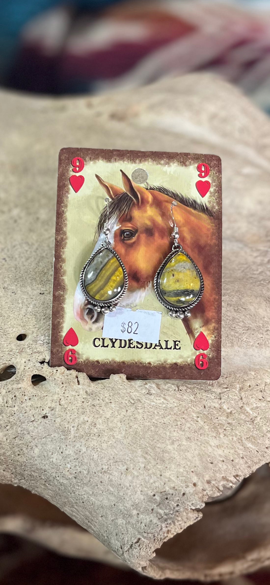 Bumblebee jasper dangle earrings. Sterling silver and native made.