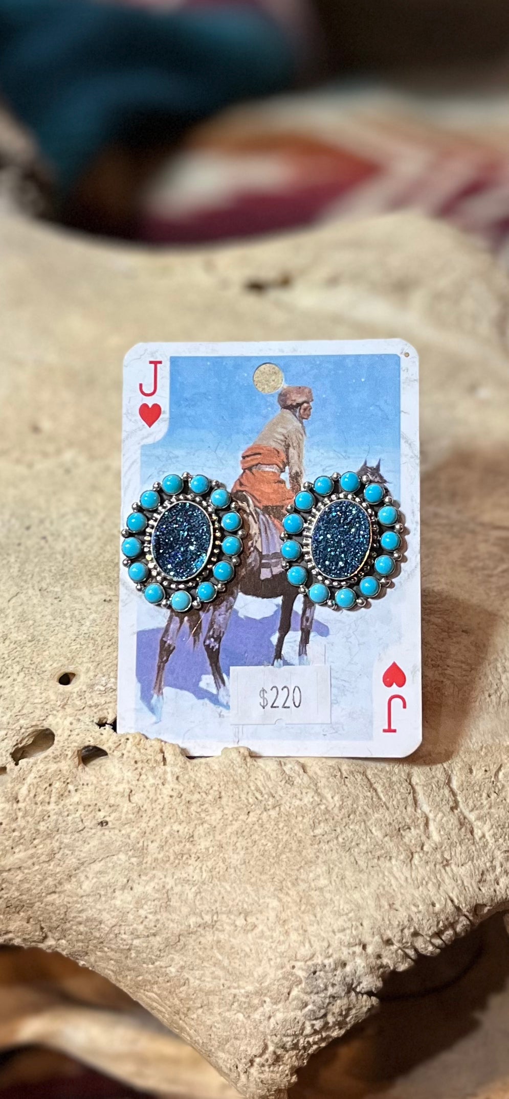 Druzy gemstones surrounded by sleeping beauty turquoise. Glitter and turquoise at its finest! Native made