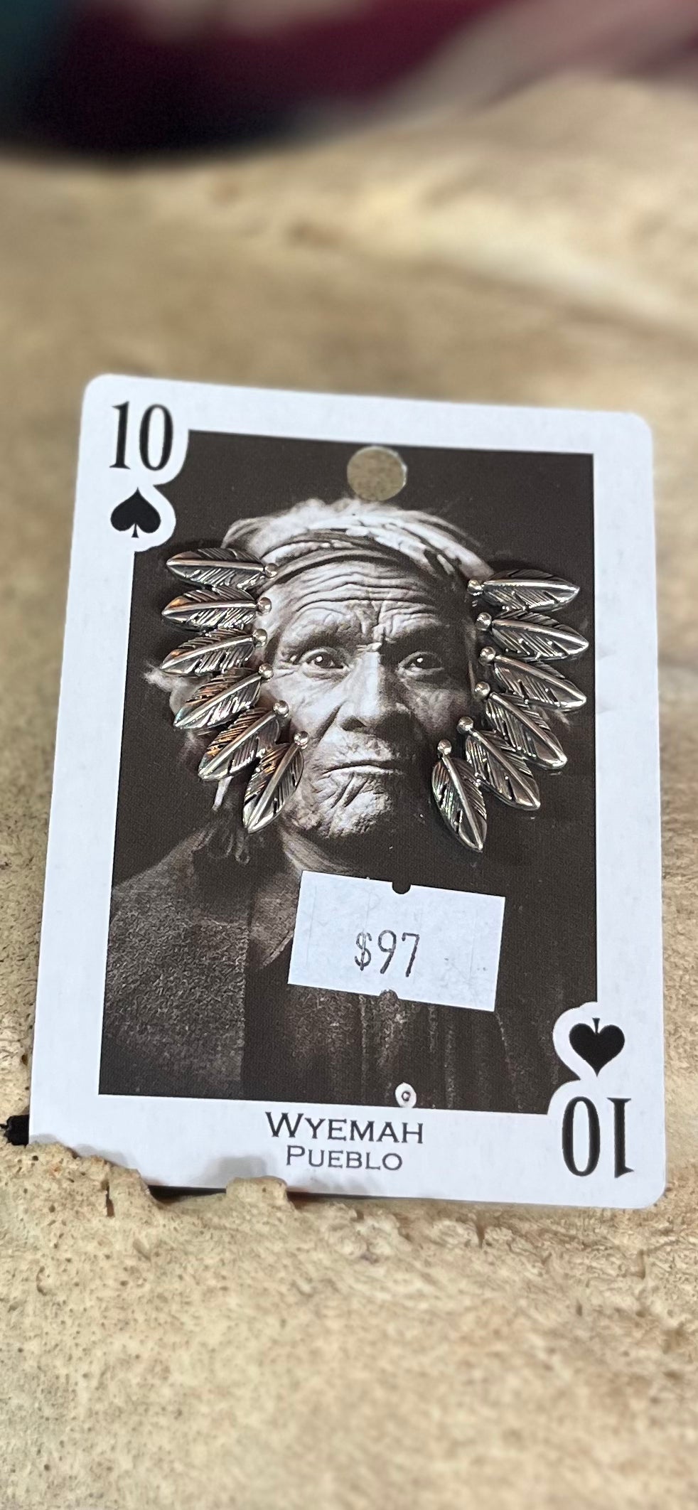 Feather row studs. Great detail. Post at the top. Nice big clutches. These are sturdy earrings. Native made