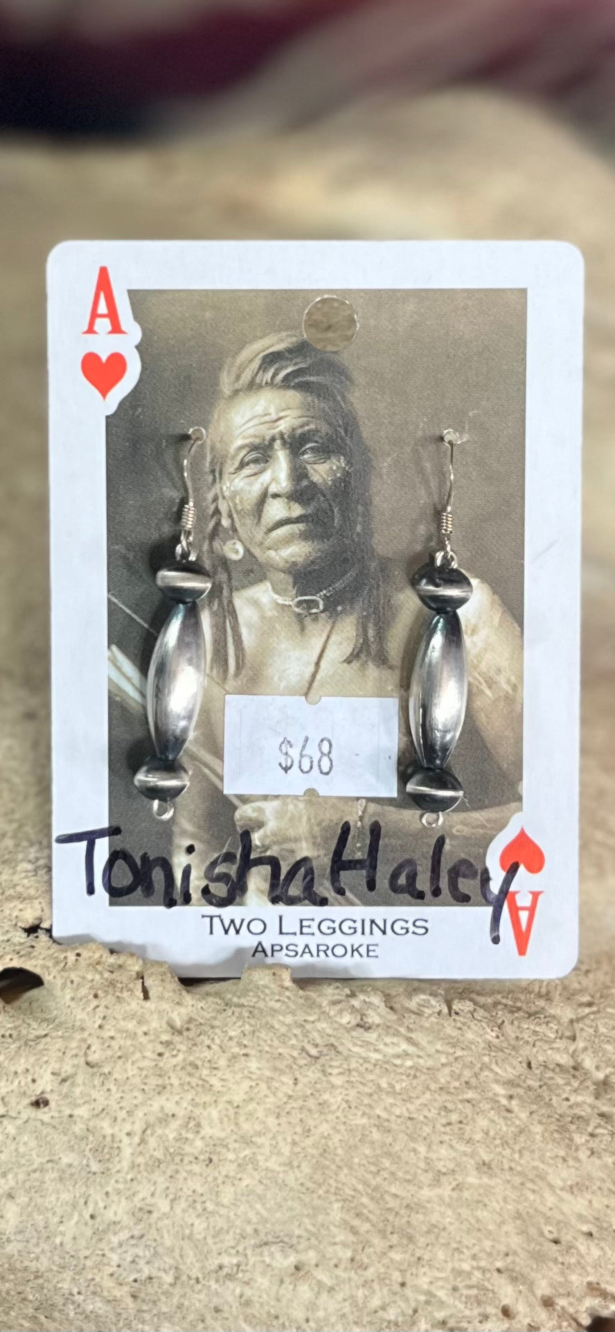 Melon and saucer Navajo Pearl earring dangle by Tonisha Haley, Native.