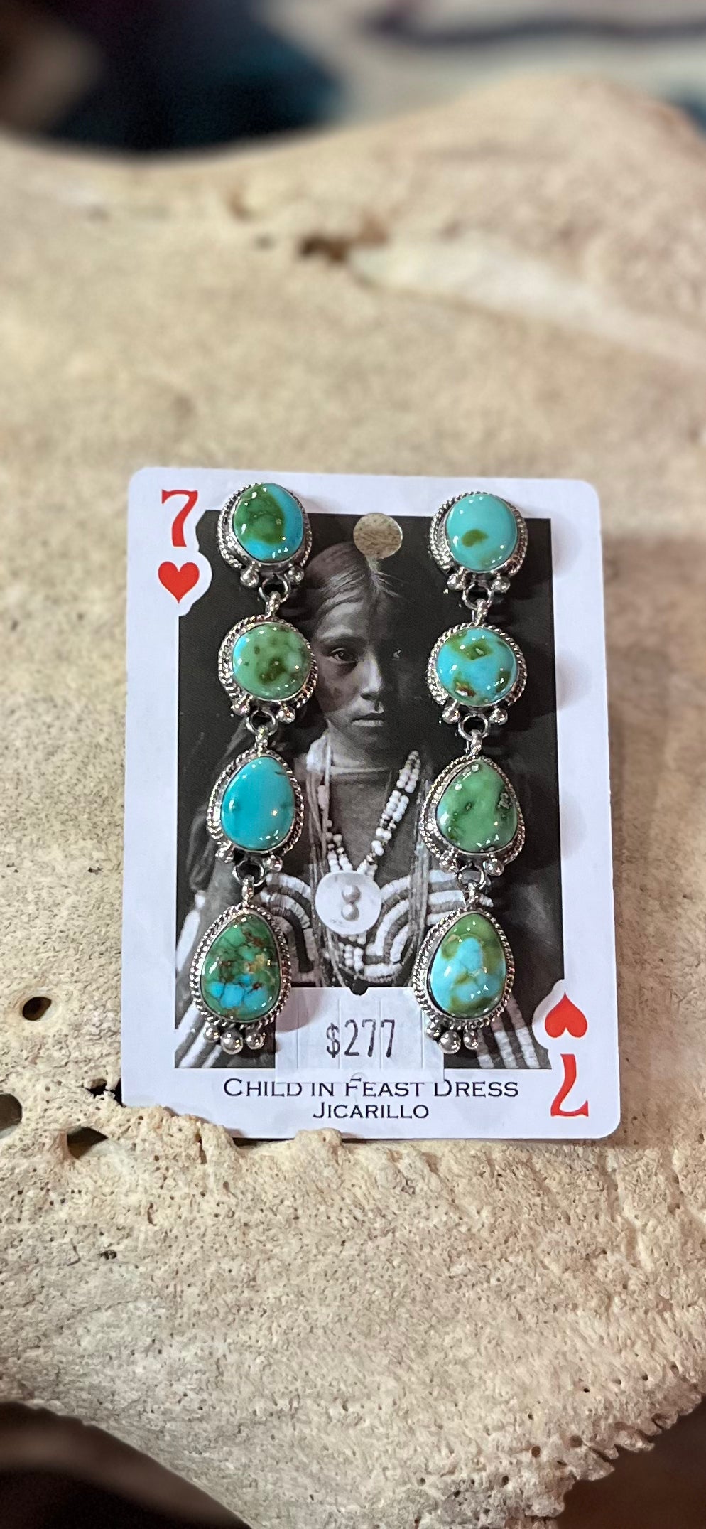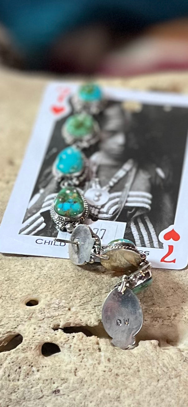Sonoran gold stud dangles. Beautiful 4 stone dangles with sterling silver dots at the bottom. Native made